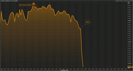 Por twitter me enviaron este gráfico con el título de “espectacular caída del DAX (índice de la bolsa). Pareciera que las acciones se hubieran desmoronado a cero y hubiera habido un pánico en la Bolsa.